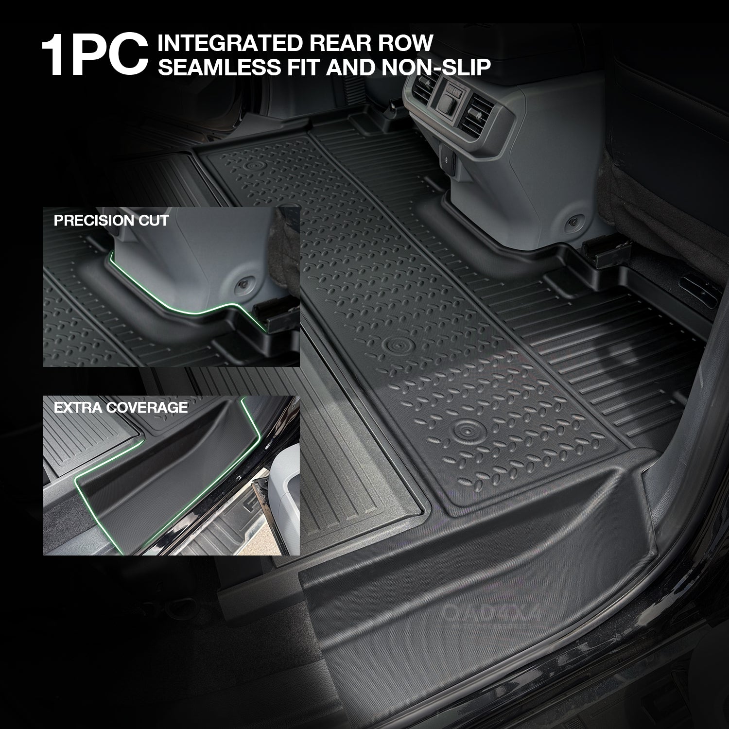 OAD4X4 floor liners are made from premium-grade TPE (Thermoplastic Elastomer), a high-performance material that combines the flexibility of rubber with the strength and durability of plastic, offering excellent resistance to water, dirt, wear, and harsh weather.