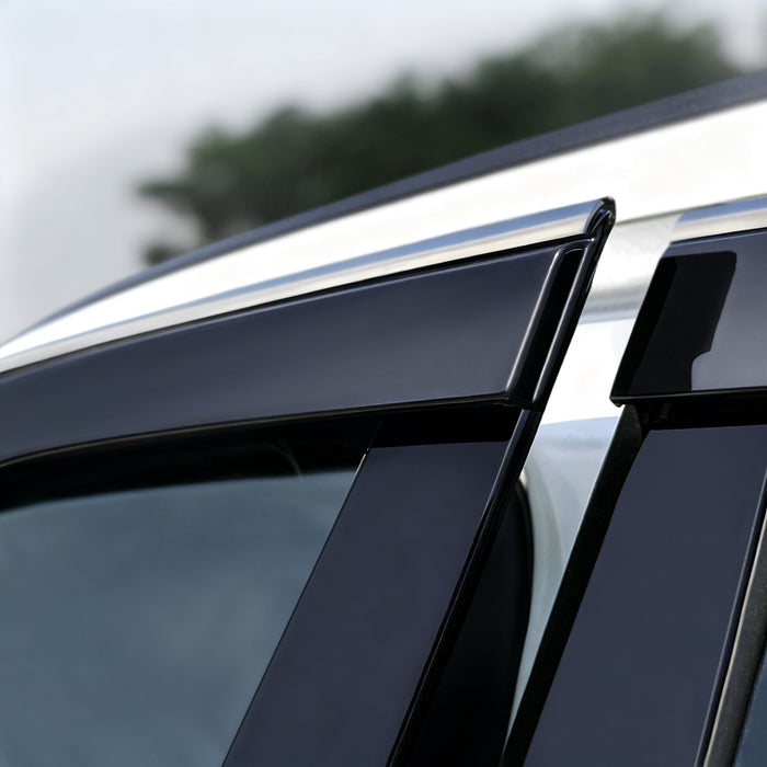 Weather shields are slim, aerodynamic visors that attach to your car’s windows. They allow fresh air to circulate while keeping rain out, reducing wind noise, and improving overall comfort during your drive.