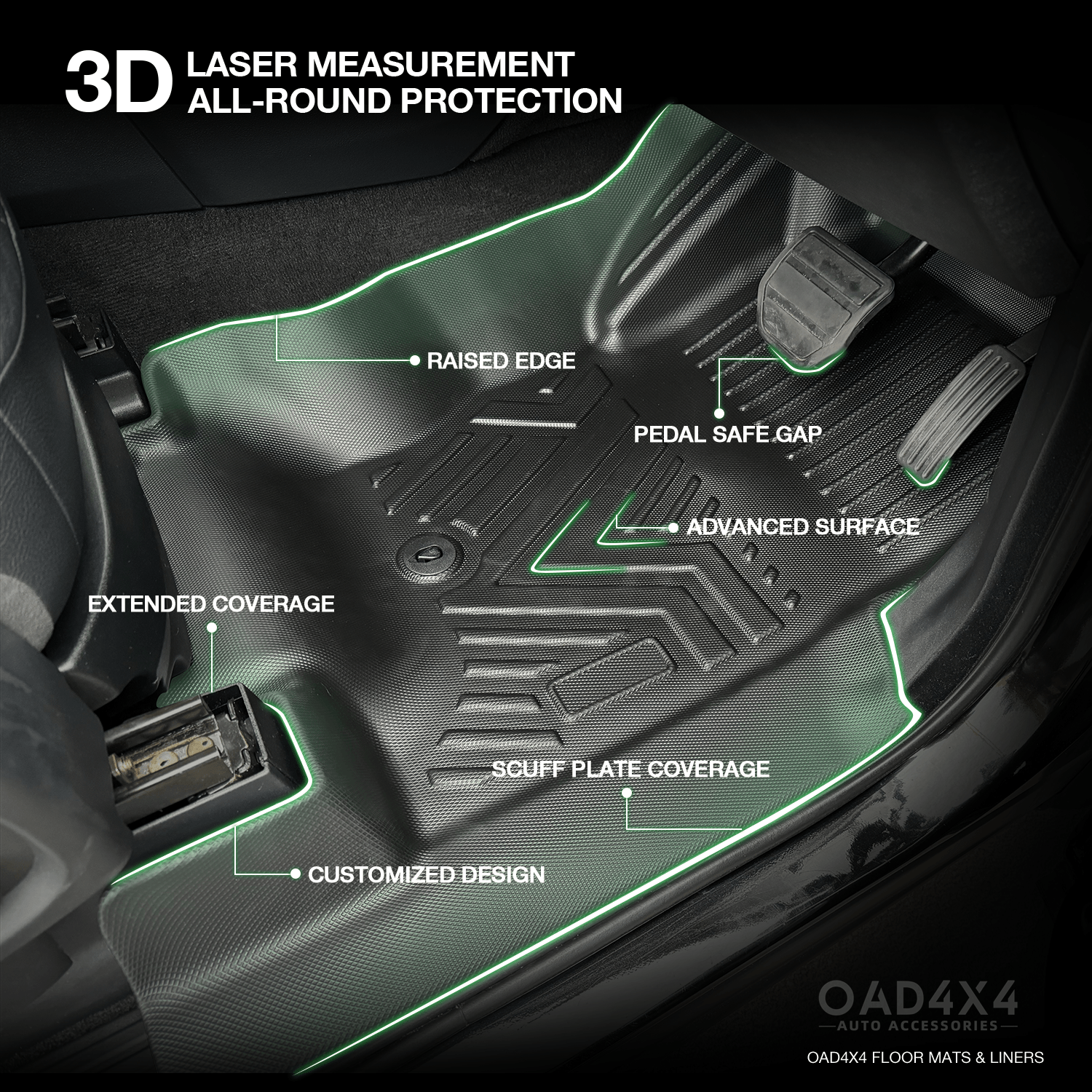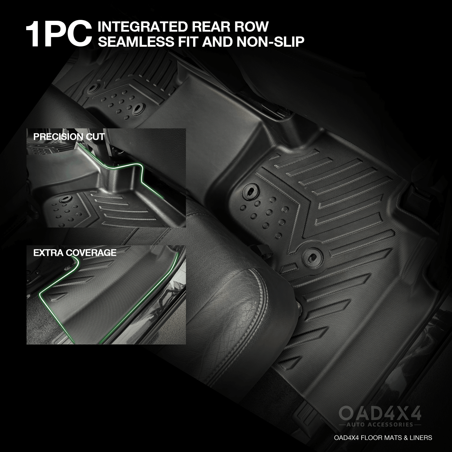 OAD4X4 floor liners are made from premium-grade TPE (Thermoplastic Elastomer), a high-performance material that combines the flexibility of rubber with the strength and durability of plastic, offering excellent resistance to water, dirt, wear, and harsh weather.