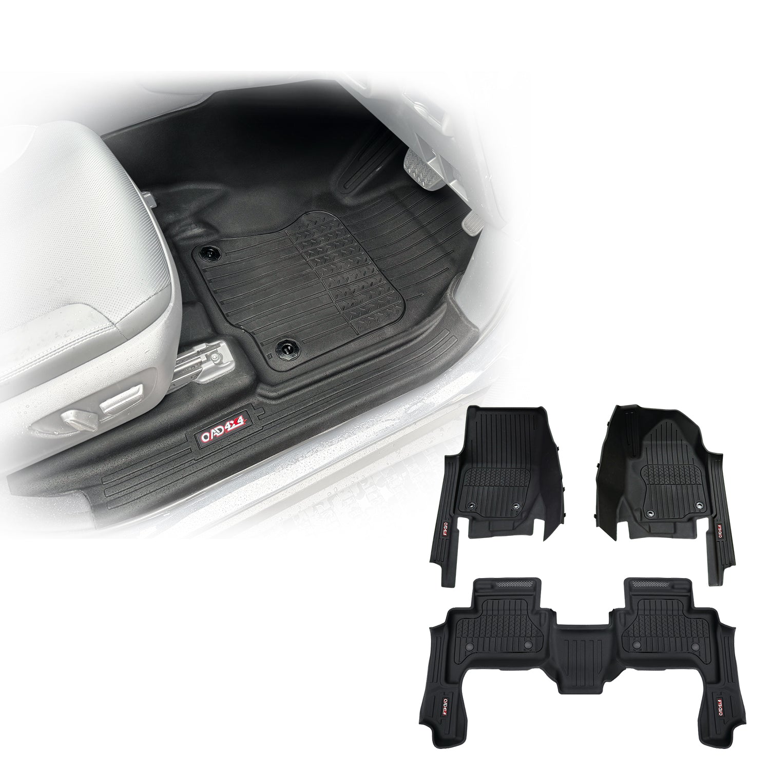 OAD4X4 floor liners are made from premium-grade TPE (Thermoplastic Elastomer), a high-performance material that combines the flexibility of rubber with the strength and durability of plastic, offering excellent resistance to water, dirt, wear, and harsh weather.