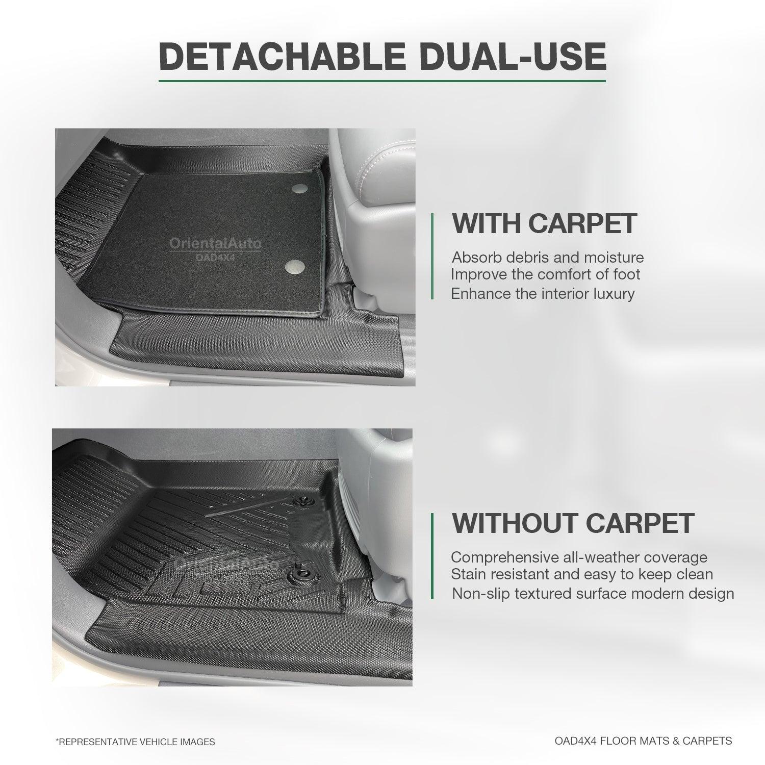 - Dual-layer Advantage: The TPE base provides all-weather protection, while the detachable carpet top adds both comfort and refined style.