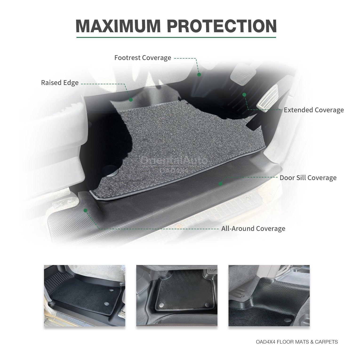 - 5D Protection: Deep-dish design traps dirt, spills, and debris, while raised edges and integrated scuff plates keep messes contained.