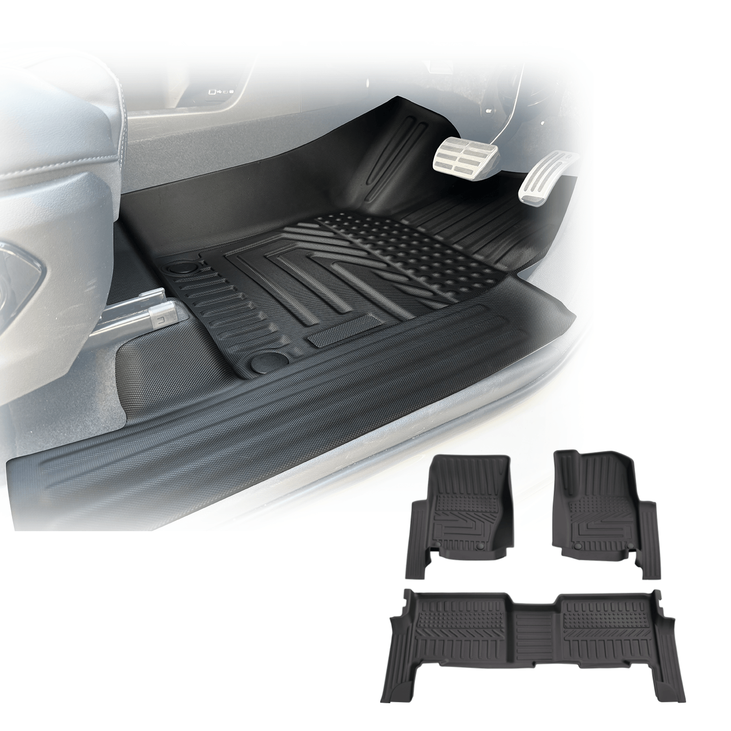 Our floor liners are laser-measured and custom-molded to match the contours of specific vehicle models.