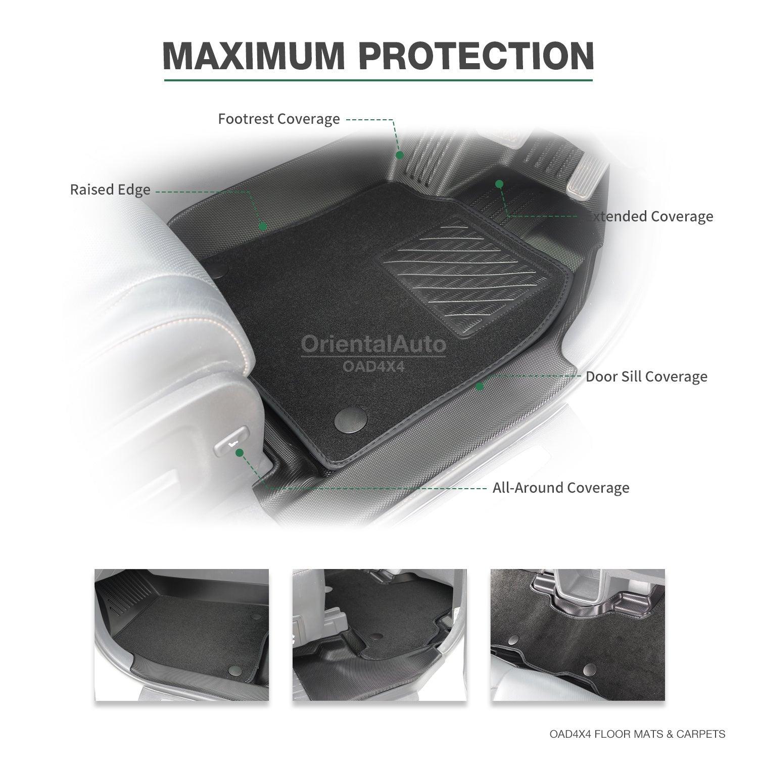 Designed with high side walls, anti-slip surface, and secure fitment using factory hooks where applicable. The contours are carefully shaped to avoid obstructing the accelerator, brake, or clutch pedals—ensuring safe driving at all times.