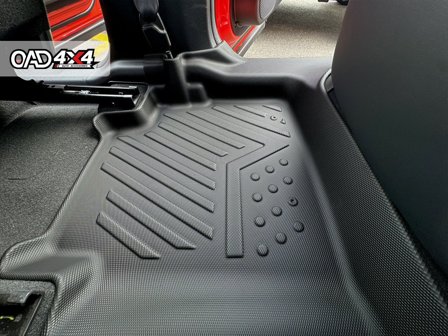 OAD4X4 floor liners are made from premium-grade TPE (Thermoplastic Elastomer), a high-performance material that combines the flexibility of rubber with the strength and durability of plastic, offering excellent resistance to water, dirt, wear, and harsh weather.
