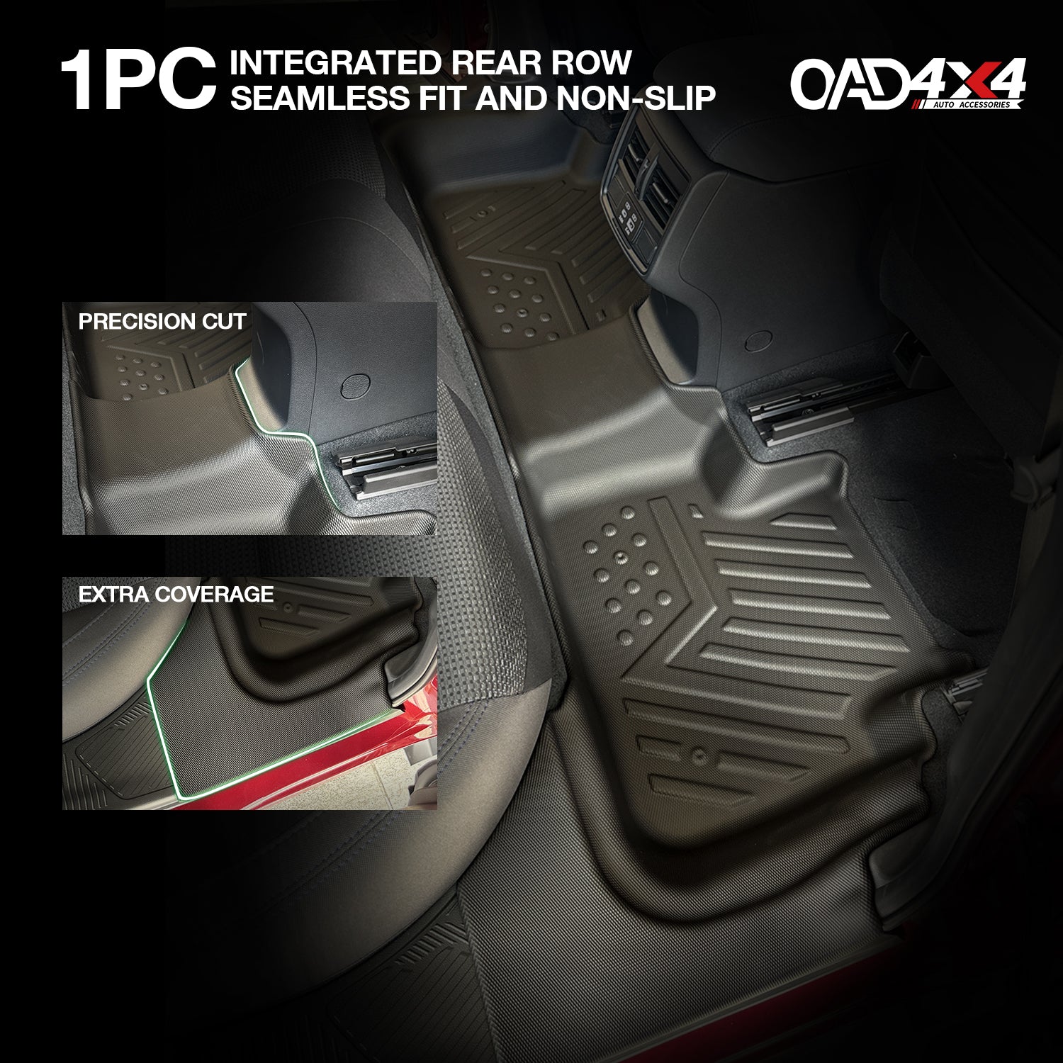 OAD4X4 floor liners are made from premium-grade TPE (Thermoplastic Elastomer), a high-performance material that combines the flexibility of rubber with the strength and durability of plastic, offering excellent resistance to water, dirt, wear, and harsh weather.
